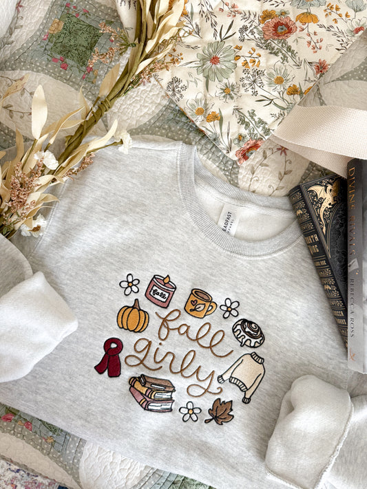 🍂 Fall Girly Embroidered Sweatshirt - READY TO SHIP