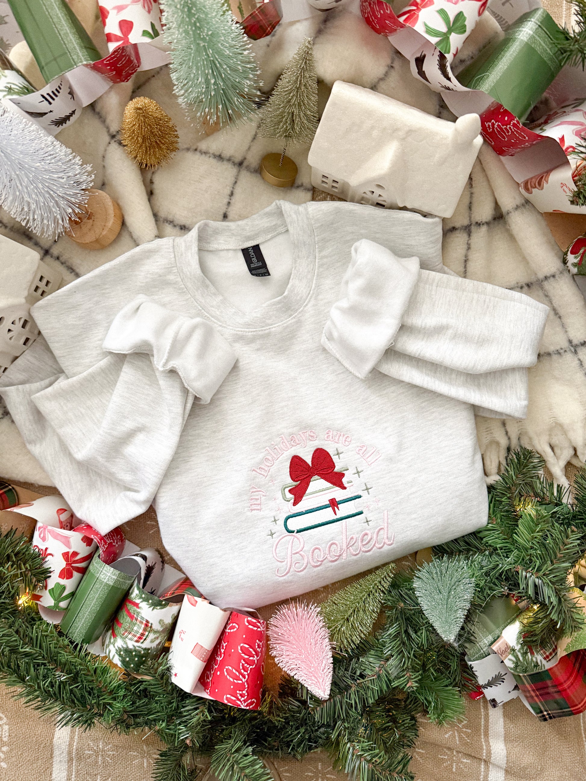 This embroidered sweatshirt features pastel “gifts,” tied up with a sweet holiday bow. The ash-gray fleece makes it extra cozy for slow mornings, gift wrapping nights, and hot cocoa reading marathons.